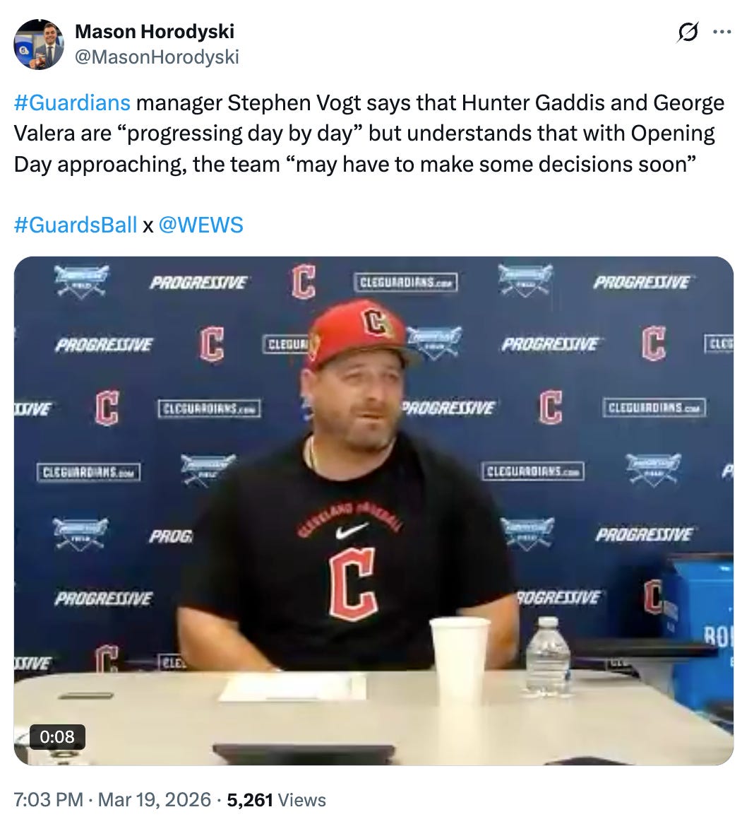 The Guardians (*knock on wood) have been historically great at keeping players off the Injured List. Let’s hope that I didn’t jinx them there. Regardless, they aren’t without their qualms, as they have a lingering injury to George Valera, who is aiming to return before Opening Day.