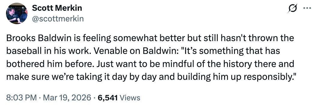 He last played almost two weeks ago, and while his progression has been steady, it’s also been slow. What this essentially means is that he hasn’t had any setbacks, but he’s also been careful not to take too many chances to push the envelope aggressively. At age 25, it feels like 2026 will be a do-or-die season for him. He’s struggled to maintain his health over the years, and it’s those injuries that have prevented him from taking off like the fantasy community believed he could. There’s still time, and every day playing time available, if he can get on the field and stay there.