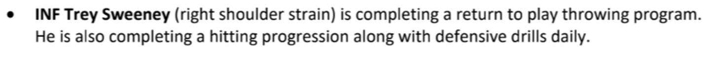 Detroit Tigers - Trey Sweeney (shoulder)