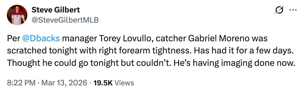 This one came up yesterday, though his injury has been ongoing for days. This doesn’t necessarily seem like a major injury, but we’re less than two weeks away from the season, and he does have a sneaky-long injury history.